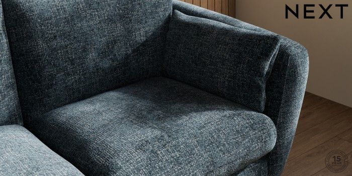 6.12.1 Buy Orlo Relaxed Sit 3 Seater Small Sofa Chunky Chenille Dark Navy Blue Retro Tapered - Mid from the Next UK online shop Click here to use our accessible website