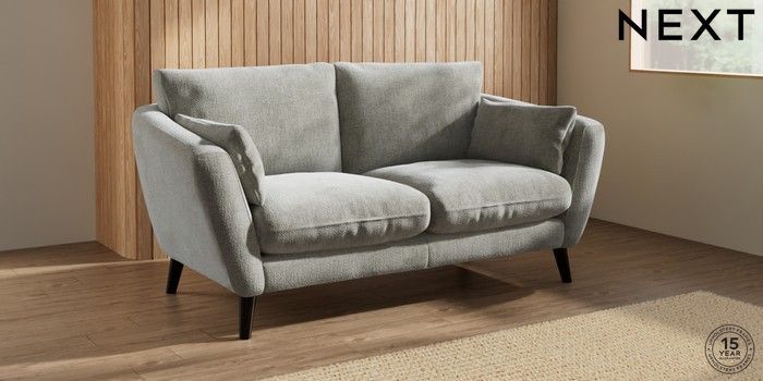 6.12.1 Buy Orlo Relaxed Sit 3 Seater Small Sofa Chunky Chenille Light Grey Retro Tapered - Dark from the Next UK online shop Click here to use our accessible website
