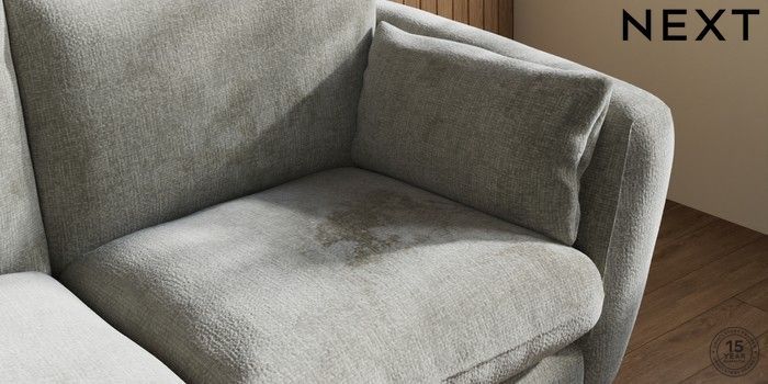 6.12.1 Buy Orlo Relaxed Sit 3 Seater Small Sofa Chunky Chenille Light Grey Retro Tapered - Dark Brown from the Next UK online shop Click here to use our accessible website