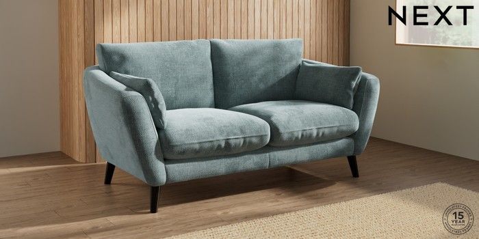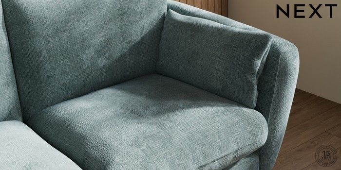6.12.1 Buy Orlo Relaxed Sit 3 Seater Small Sofa Chunky Chenille Light Teal Green Retro Tapered - Dark from the Next UK online shop Click here to use our accessible website