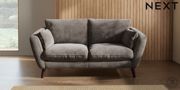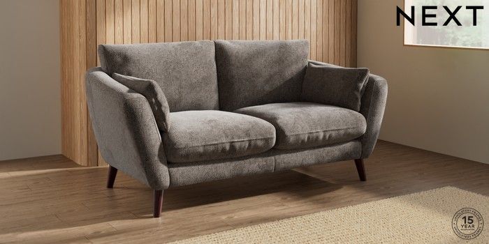 6.12.1 Buy Orlo Relaxed Sit 3 Seater Small Sofa Chunky Chenille Mink Brown Retro Tapered - Dark Brown from the Next UK online shop Click here to use our accessible website