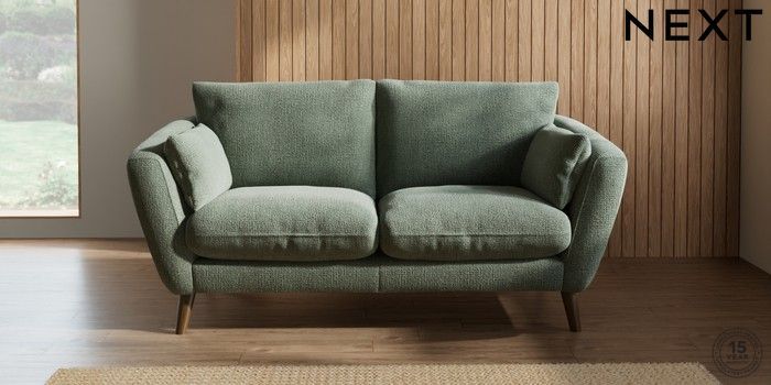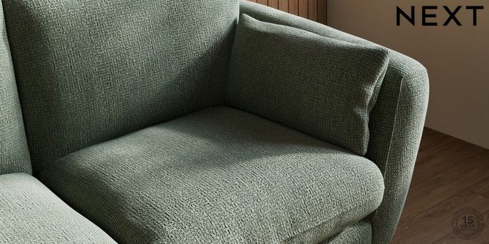 6.12.1 Buy Orlo Relaxed Sit 3 Seater Small Sofa Chunky Texture Mid Forest Green Retro Tapered - Mid from the Next UK online shop Click here to use our accessible website