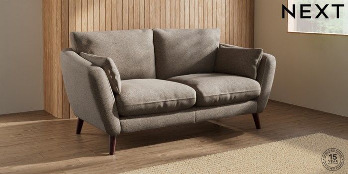 6.12.1 Buy Orlo Relaxed Sit 3 Seater Small Sofa Chunky Weave Dark Natural Retro Tapered - Dark Brown from the Next UK online shop Click here to use our accessible website