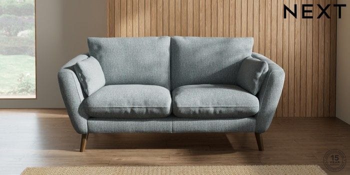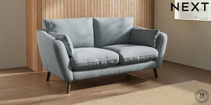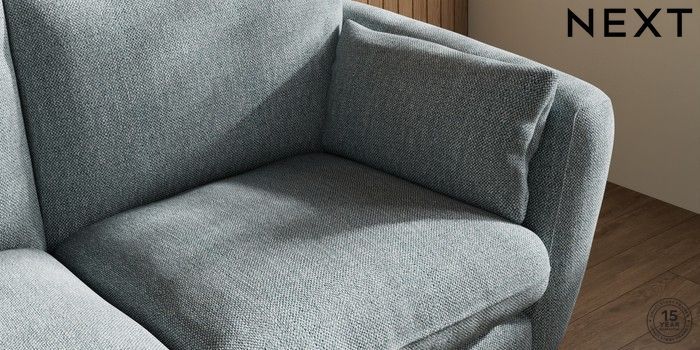 6.12.1 Buy Orlo Relaxed Sit 3 Seater Small Sofa Chunky Weave Mid Blue Retro Tapered - Mid from the Next UK online shop Click here to use our accessible website