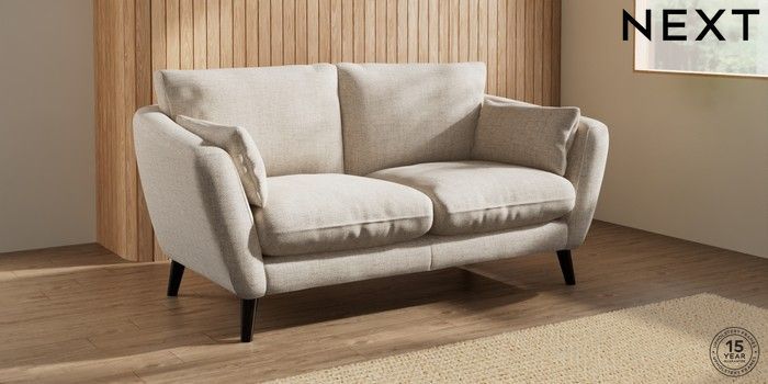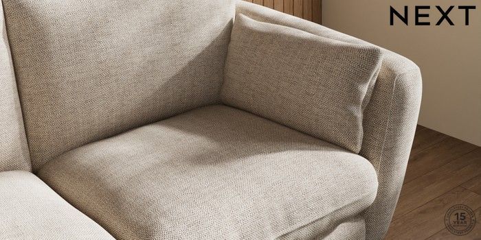 6.12.1 Buy Orlo Relaxed Sit 3 Seater Small Sofa Chunky Weave Mid Natural Retro Tapered - Dark from the Next UK online shop Click here to use our accessible website