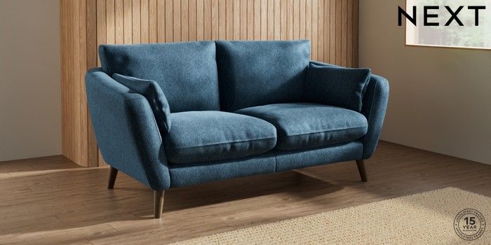7.0.3 Buy Orlo Relaxed Sit 3 Seater Small Sofa Cotswold Chenille Dark Blue Retro Tapered - Mid from the Next UK online shop Click here to use our accessible website