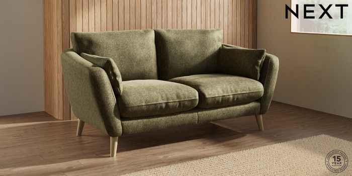 6.12.1 Buy Orlo Relaxed Sit 3 Seater Small Sofa Cotswold Chenille Dark Green Retro Tapered - Light from the Next UK online shop Click here to use our accessible website