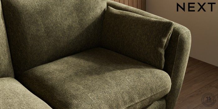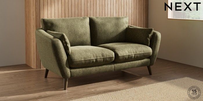 6.12.1 Buy Orlo Relaxed Sit 3 Seater Small Sofa Cotswold Chenille Dark Green Retro Tapered - Mid from the Next UK online shop Click here to use our accessible website