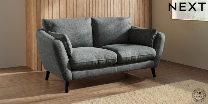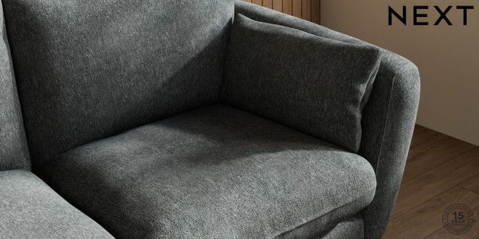 6.12.1 Buy Orlo Relaxed Sit 3 Seater Small Sofa Cotswold Chenille Dark Grey Retro Tapered - Dark from the Next UK online shop Click here to use our accessible website
