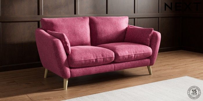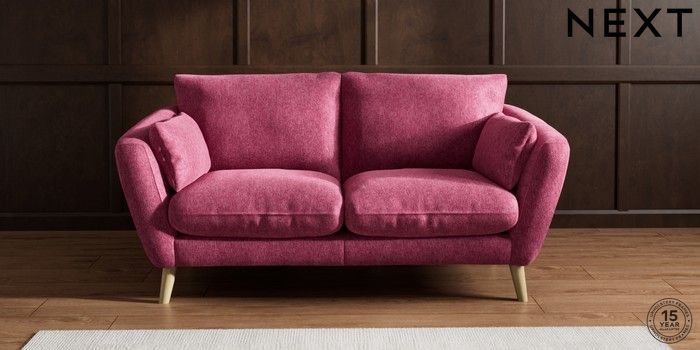 6.12.1 Buy Orlo Relaxed Sit 3 Seater Small Sofa Cotswold Chenille Dark Raspberry Pink Retro Tapered - Light from the Next UK online shop Click here to use our accessible website