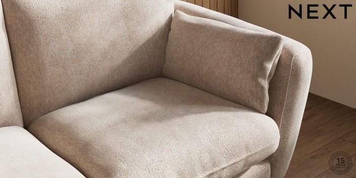 6.12.1 Buy Orlo Relaxed Sit 3 Seater Small Sofa Cotswold Chenille Light Natural Retro Tapered - Light from the Next UK online shop Click here to use our accessible website