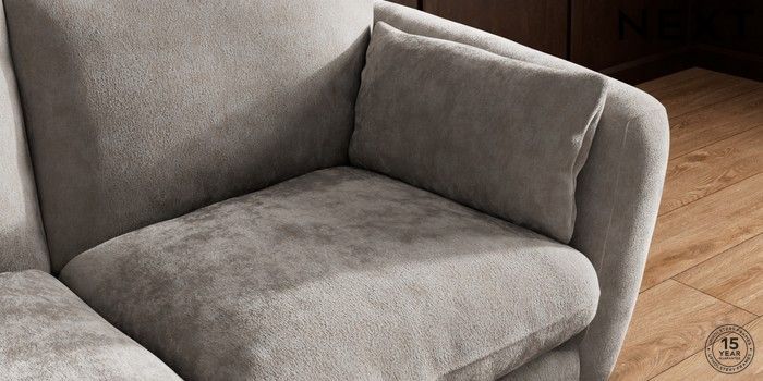 6.12.1 Buy Orlo Relaxed Sit 3 Seater Small Sofa Distressed Velour French Grey Retro Tapered - Dark Brown from the Next UK online shop Click here to use our accessible website
