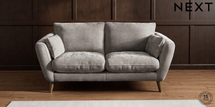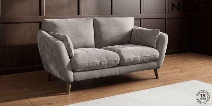 6.12.1 Buy Orlo Relaxed Sit 3 Seater Small Sofa Distressed Velour French Grey Retro Tapered - Mid from the Next UK online shop Click here to use our accessible website
