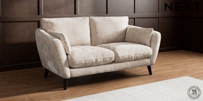 6.12.1 Buy Orlo Relaxed Sit 3 Seater Small Sofa Distressed Velour Mid Natural Retro Tapered - Dark from the Next UK online shop Click here to use our accessible website