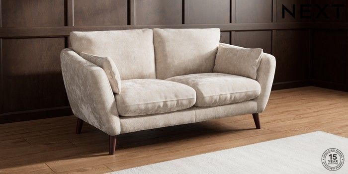 6.12.1 Buy Orlo Relaxed Sit 3 Seater Small Sofa Distressed Velour Mid Natural Retro Tapered - Dark Brown from the Next UK online shop Click here to use our accessible website