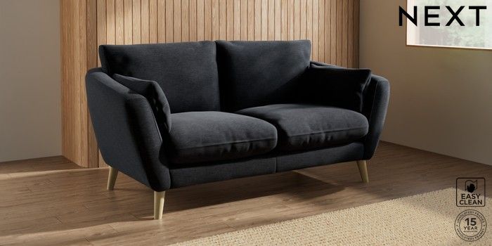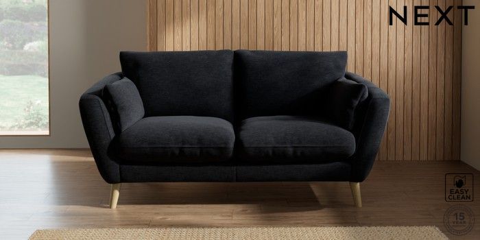 6.12.1 Buy Orlo Relaxed Sit 3 Seater Small Sofa Fine Chenille Easy Clean Black Retro Tapered - Light from the Next UK online shop Click here to use our accessible website
