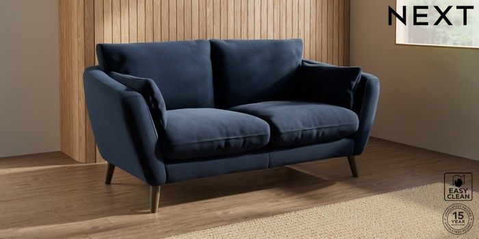 6.12.1 Buy Orlo Relaxed Sit 3 Seater Small Sofa Fine Chenille Easy Clean Dark Navy Blue Retro Tapered - Mid from the Next UK online shop Click here to use our accessible website