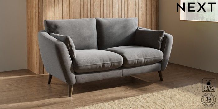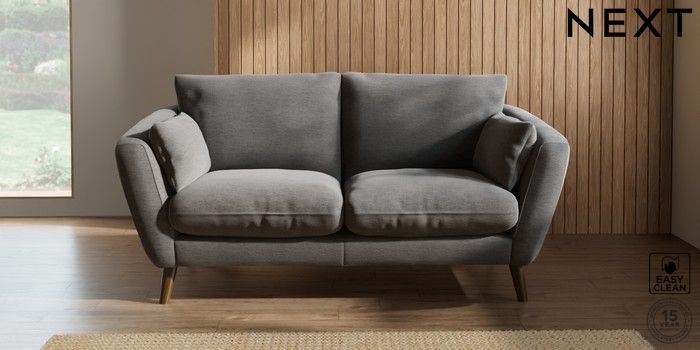 6.12.1 Buy Orlo Relaxed Sit 3 Seater Small Sofa Fine Chenille Easy Clean Dark Smoke Grey Retro Tapered - Mid from the Next UK online shop Click here to use our accessible website