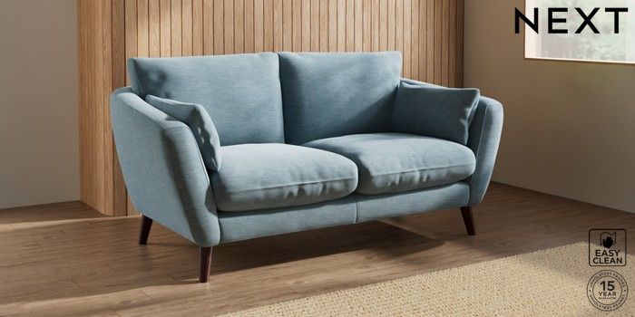 6.12.1 Buy Orlo Relaxed Sit 3 Seater Small Sofa Fine Chenille Easy Clean Mid Blue Retro Tapered - Dark Brown from the Next UK online shop Click here to use our accessible website