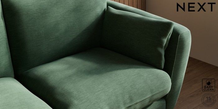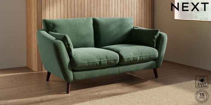 6.12.1 Buy Orlo Relaxed Sit 3 Seater Small Sofa Fine Chenille Easy Clean Mid Khaki Green Retro Tapered - Dark Brown from the Next UK online shop Click here to use our accessible website