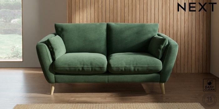 6.12.1 Buy Orlo Relaxed Sit 3 Seater Small Sofa Fine Chenille Easy Clean Mid Khaki Green Retro Tapered - Light from the Next UK online shop Click here to use our accessible website