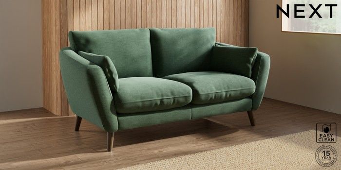 6.12.1 Buy Orlo Relaxed Sit 3 Seater Small Sofa Fine Chenille Easy Clean Mid Khaki Green Retro Tapered - Mid from the Next UK online shop Click here to use our accessible website