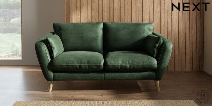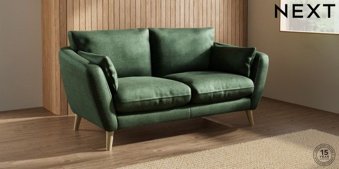 6.12.1 Buy Orlo Relaxed Sit 3 Seater Small Sofa Luxe Chenille Dark Green Retro Tapered - Light from the Next UK online shop Click here to use our accessible website
