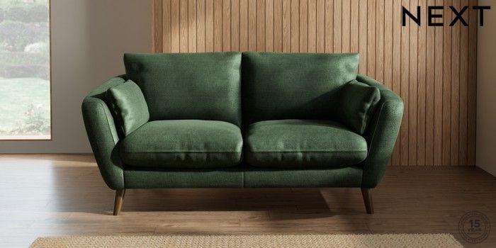 6.12.1 Buy Orlo Relaxed Sit 3 Seater Small Sofa Luxe Chenille Dark Green Retro Tapered - Mid from the Next UK online shop Click here to use our accessible website