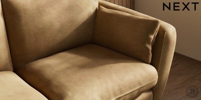 7.0.3 Buy Orlo Relaxed Sit 3 Seater Small Sofa Luxe Chenille Honey Yellow Retro Tapered - Dark from the Next UK online shop Click here to use our accessible website
