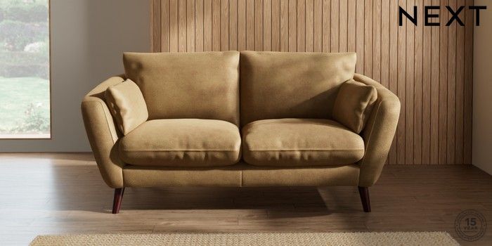 6.12.1 Buy Orlo Relaxed Sit 3 Seater Small Sofa Luxe Chenille Honey Yellow Retro Tapered - Dark Brown from the Next UK online shop Click here to use our accessible website