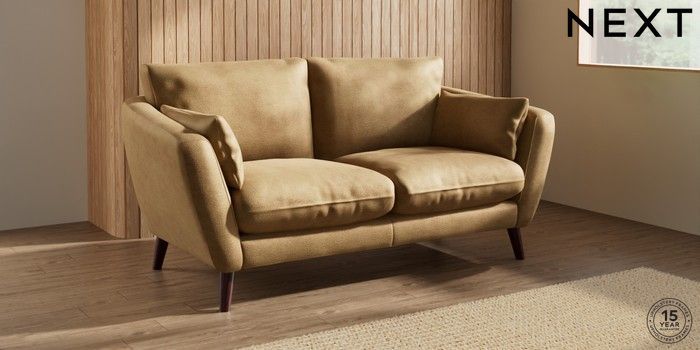 7.0.3 Buy Orlo Relaxed Sit 3 Seater Small Sofa Luxe Chenille Honey Yellow Retro Tapered - Dark Brown from the Next UK online shop Click here to use our accessible website