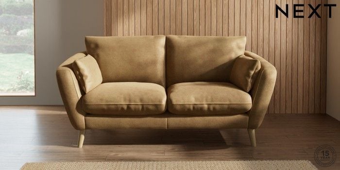 6.12.1 Buy Orlo Relaxed Sit 3 Seater Small Sofa Luxe Chenille Honey Yellow Retro Tapered - Light from the Next UK online shop Click here to use our accessible website