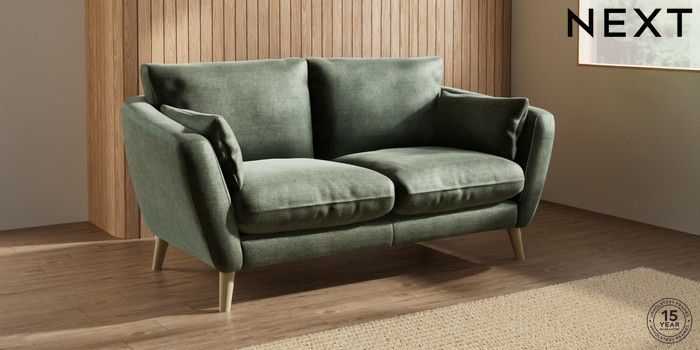 7.0.3 Buy Orlo Relaxed Sit 3 Seater Small Sofa Luxe Chenille Mid Green Retro Tapered - Light from the Next UK online shop Click here to use our accessible website