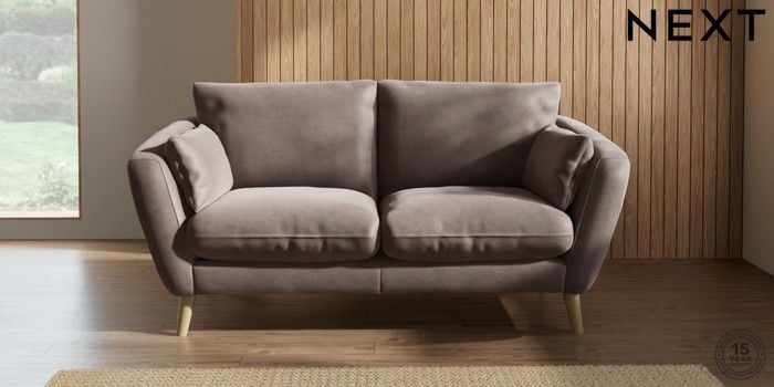 6.12.1 Buy Orlo Relaxed Sit 3 Seater Small Sofa Luxe Chenille Mink Brown Retro Tapered - Light from the Next UK online shop Click here to use our accessible website