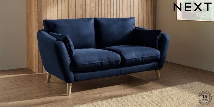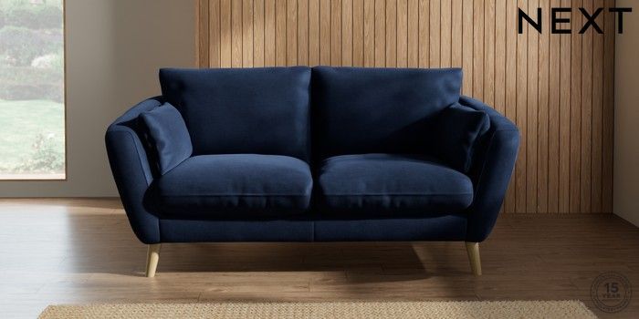 6.12.1 Buy Orlo Relaxed Sit 3 Seater Small Sofa Luxe Chenille Navy Blue Retro Tapered - Light from the Next UK online shop Click here to use our accessible website
