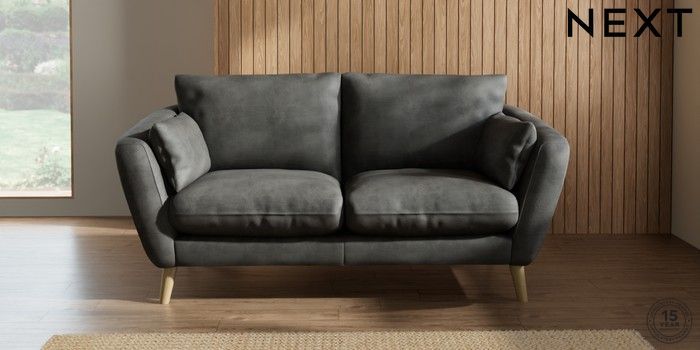 6.12.1 Buy Orlo Relaxed Sit 3 Seater Small Sofa Monza Faux Leather Easy Clean Dark Grey Retro Tapered - Light from the Next UK online shop Click here to use our accessible website