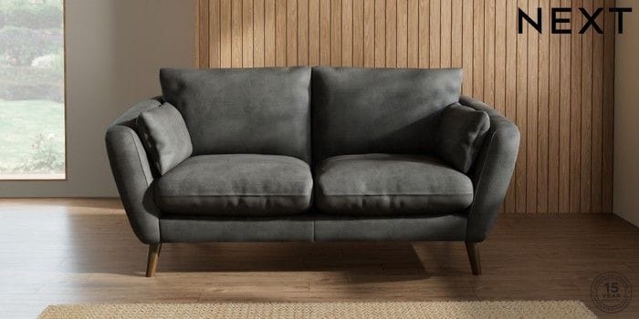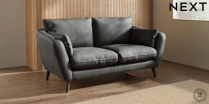 6.12.1 Buy Orlo Relaxed Sit 3 Seater Small Sofa Monza Faux Leather Easy Clean Dark Grey Retro Tapered - Mid from the Next UK online shop Click here to use our accessible website