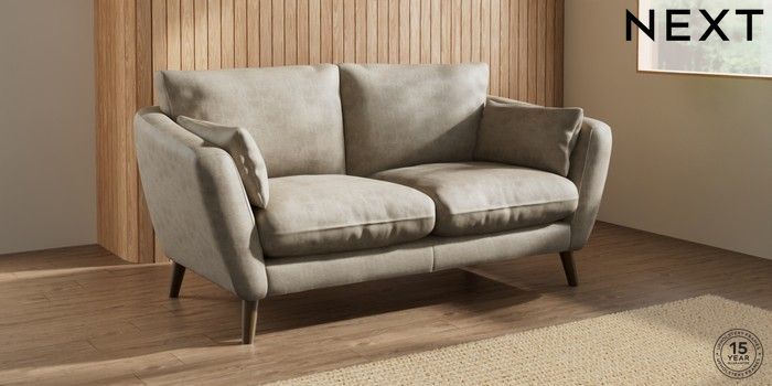 6.12.1 Buy Orlo Relaxed Sit 3 Seater Small Sofa Monza Faux Leather Easy Clean Mink Brown Retro Tapered - Mid from the Next UK online shop Click here to use our accessible website