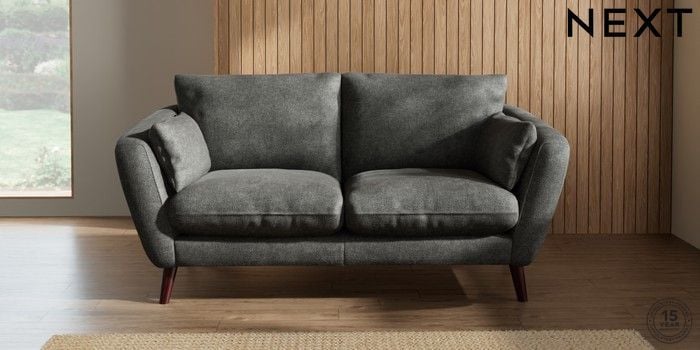 6.12.1 Buy Orlo Relaxed Sit 3 Seater Small Sofa Plush Chenille Dark Grey Retro Tapered - Dark Brown from the Next UK online shop Click here to use our accessible website