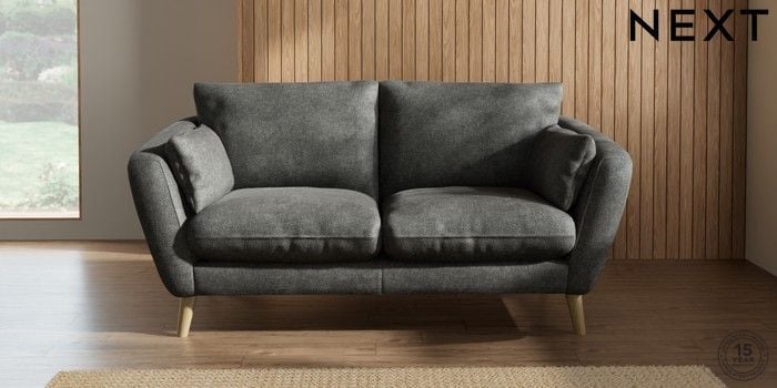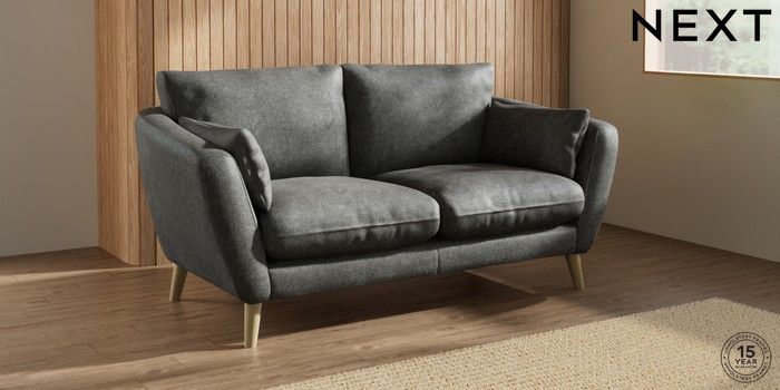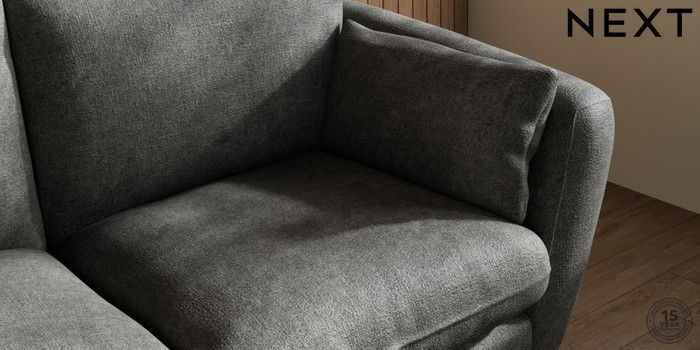 6.12.1 Buy Orlo Relaxed Sit 3 Seater Small Sofa Plush Chenille Dark Grey Retro Tapered - Light from the Next UK online shop Click here to use our accessible website