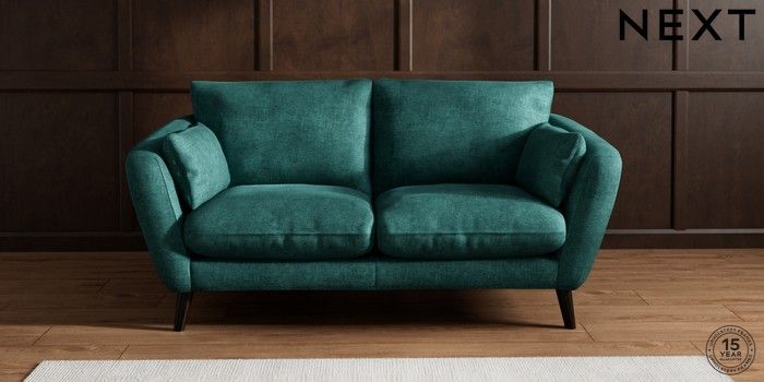 6.12.1 Buy Orlo Relaxed Sit 3 Seater Small Sofa Plush Chenille Dark Teal Green Retro Tapered - Dark from the Next UK online shop Click here to use our accessible website