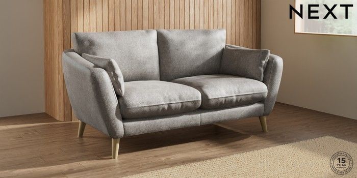 6.12.1 Buy Orlo Relaxed Sit 3 Seater Small Sofa Plush Chenille Light Grey Retro Tapered - Light from the Next UK online shop Click here to use our accessible website