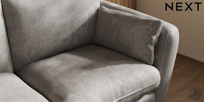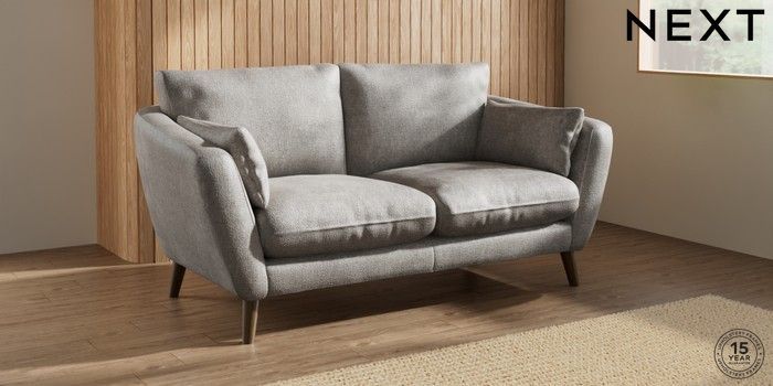 6.12.1 Buy Orlo Relaxed Sit 3 Seater Small Sofa Plush Chenille Light Grey Retro Tapered - Mid from the Next UK online shop Click here to use our accessible website