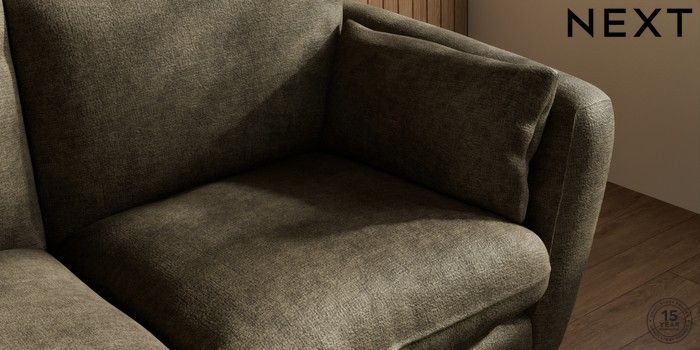 6.12.1 Buy Orlo Relaxed Sit 3 Seater Small Sofa Plush Chenille Moss Green Retro Tapered - Dark Brown from the Next UK online shop Click here to use our accessible website