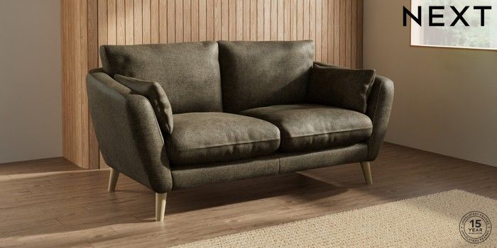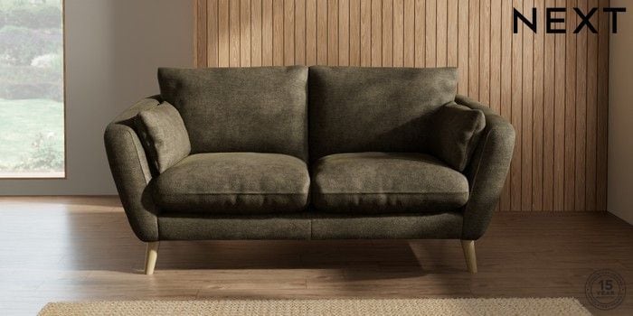 6.12.1 Buy Orlo Relaxed Sit 3 Seater Small Sofa Plush Chenille Moss Green Retro Tapered - Light from the Next UK online shop Click here to use our accessible website