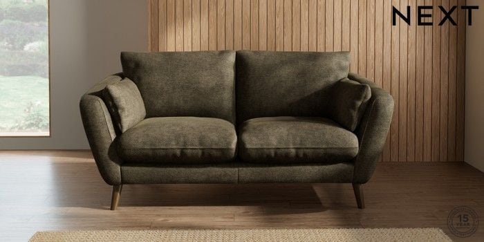 6.12.1 Buy Orlo Relaxed Sit 3 Seater Small Sofa Plush Chenille Moss Green Retro Tapered - Mid from the Next UK online shop Click here to use our accessible website