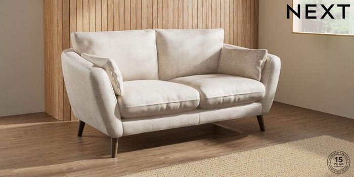 6.12.1 Buy Orlo Relaxed Sit 3 Seater Small Sofa Plush Chenille Oyster Retro Tapered - Mid from the Next UK online shop Click here to use our accessible website