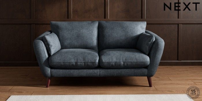 6.12.1 Buy Orlo Relaxed Sit 3 Seater Small Sofa Plush Chenille Slate Blue Retro Tapered - Dark Brown from the Next UK online shop Click here to use our accessible website