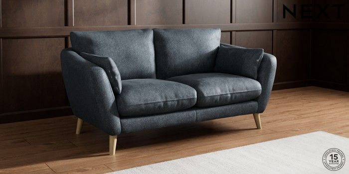 6.12.1 Buy Orlo Relaxed Sit 3 Seater Small Sofa Plush Chenille Slate Blue Retro Tapered - Light from the Next UK online shop Click here to use our accessible website