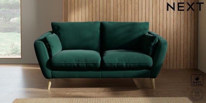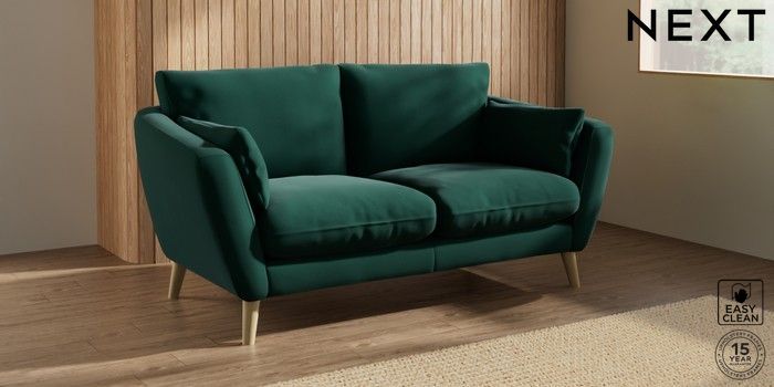 6.12.1 Buy Orlo Relaxed Sit 3 Seater Small Sofa Plush Velvet Easy Clean Bottle Green Retro Tapered - Light from the Next UK online shop Click here to use our accessible website